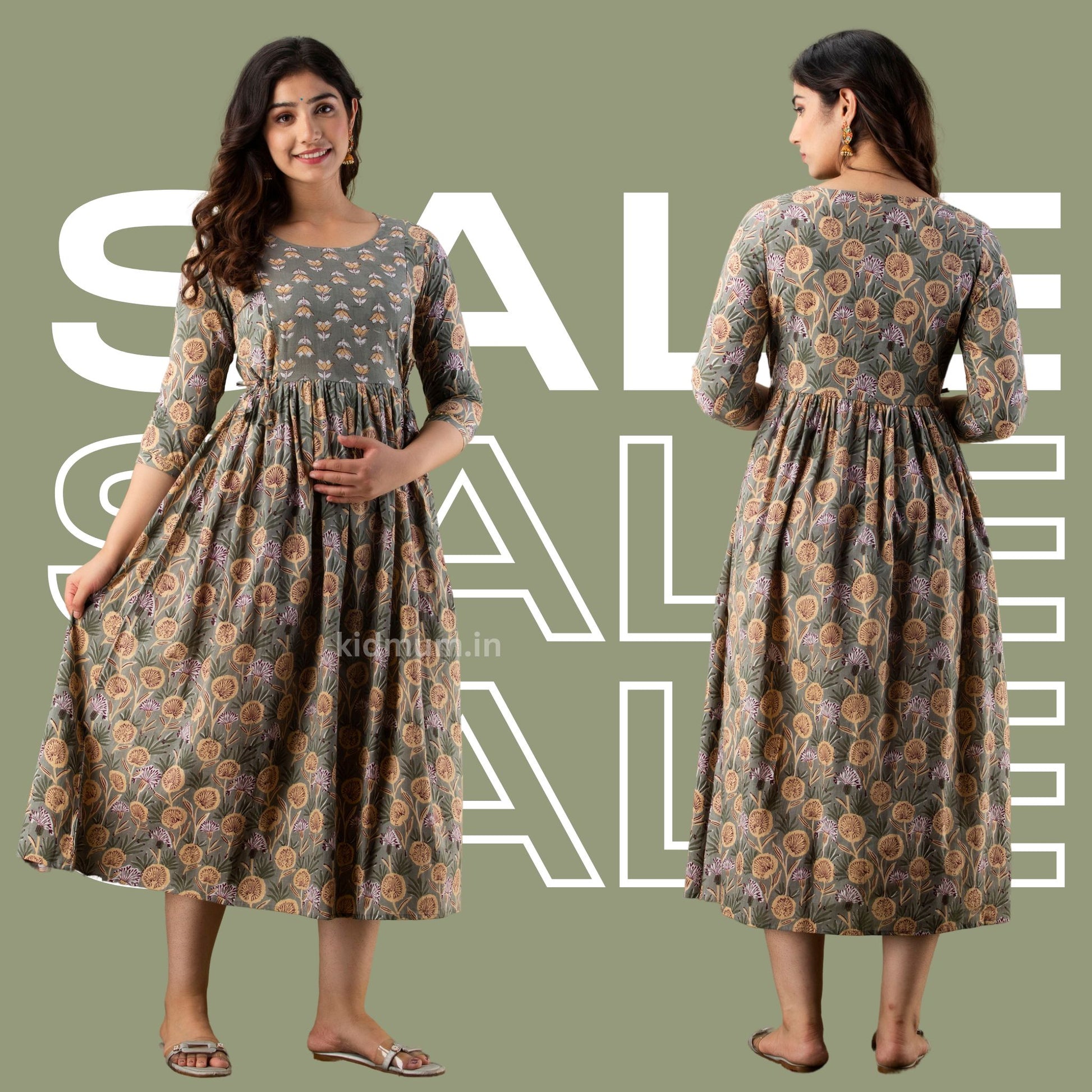 Bump-Friendly Design: Concealing Pleats Strategically placed center pleats around the tummy hide the baby bump with style.